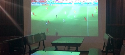 Трансляция спортивных программ на широкоформатном экране в зале