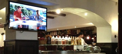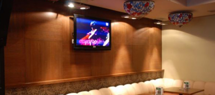 Трансляция: бар - на экран проектором, в зале есть тв